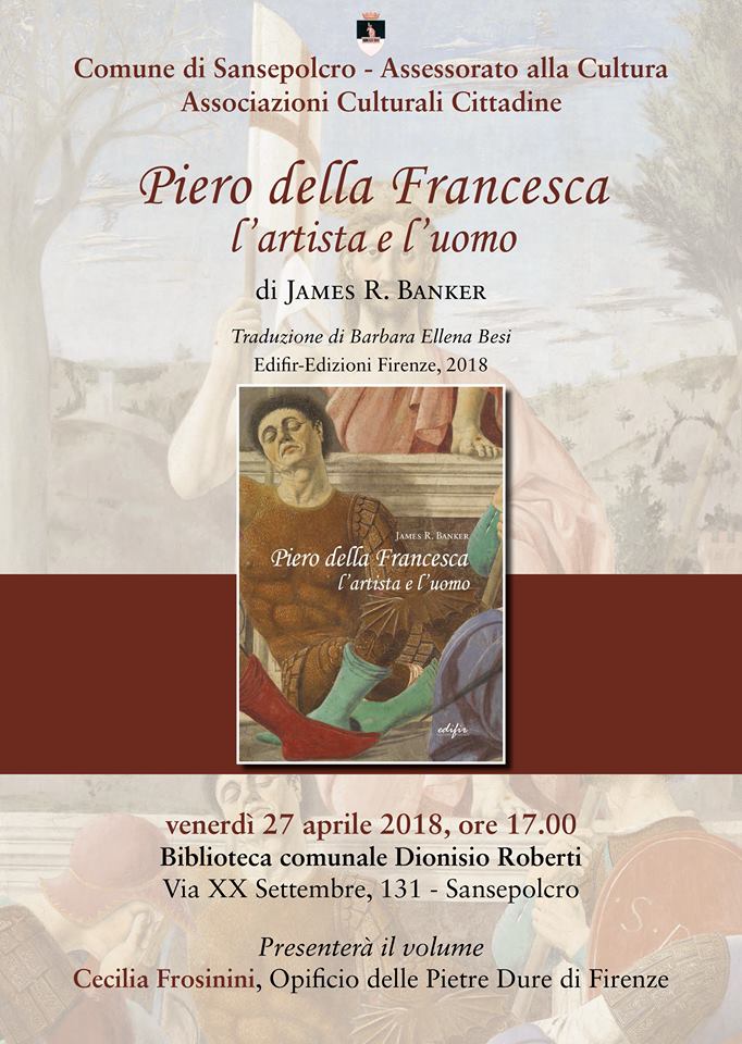 Venerdì 27 aprile alle ore 17:00, presso la sala conferenze della Biblioteca Comunale di Palazzo Ducci del Rosso, si svolgerà la presentazione del libro “Piero della Francesca, l’artista e l’uomo” (Edifir Edizioni Firenze 2018, traduzione di Barbara Ellena Besi) con l’autore, prof. James R. Banker.